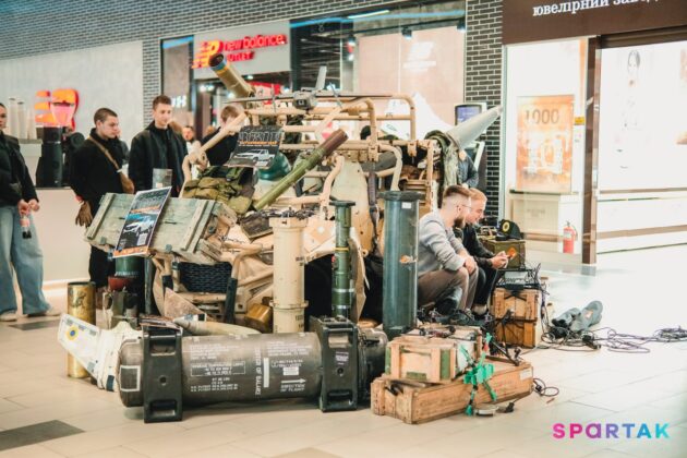 Jednou z našich iniciatív bola charitatívna výstava trofejnej vojenskej techniky a predmetov z frontovej línie. Prezentovali sme odpaľovacie tubusy, nábojnice, prvky FPV dronov, krídlo UAV, debny od munície a získané vozidlo.